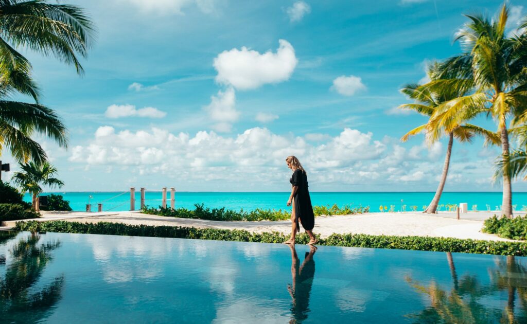 This contemporary family holiday home incorporates a large reflecting pond at the entrance to the property, an equally striking infinity pool by the beach and a full outdoor kitchen. Coast used materials and massing to create a minimalist island feel